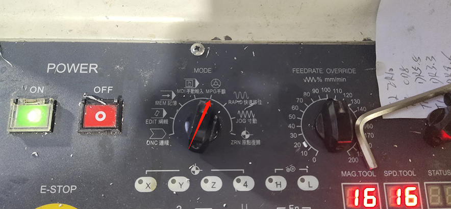 模式開關選擇“手輪”方式