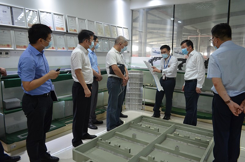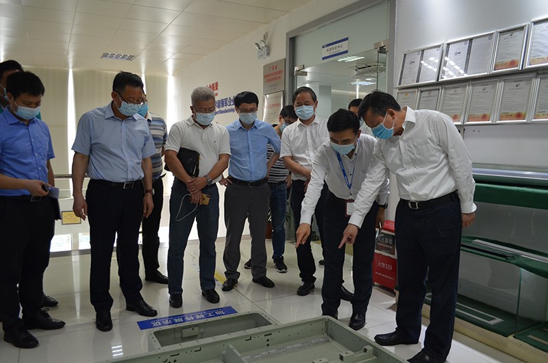 接著,朱偉市長一行參觀普拉迪型材加工中心加工樣品展示廳及辦公室,對新能源汽車電池托盤及汽車天窗導軌感到興趣,普拉迪總經理李愛軍進行講解,對普拉迪型材加工中心加工精度和公司的研發實力充分肯定。