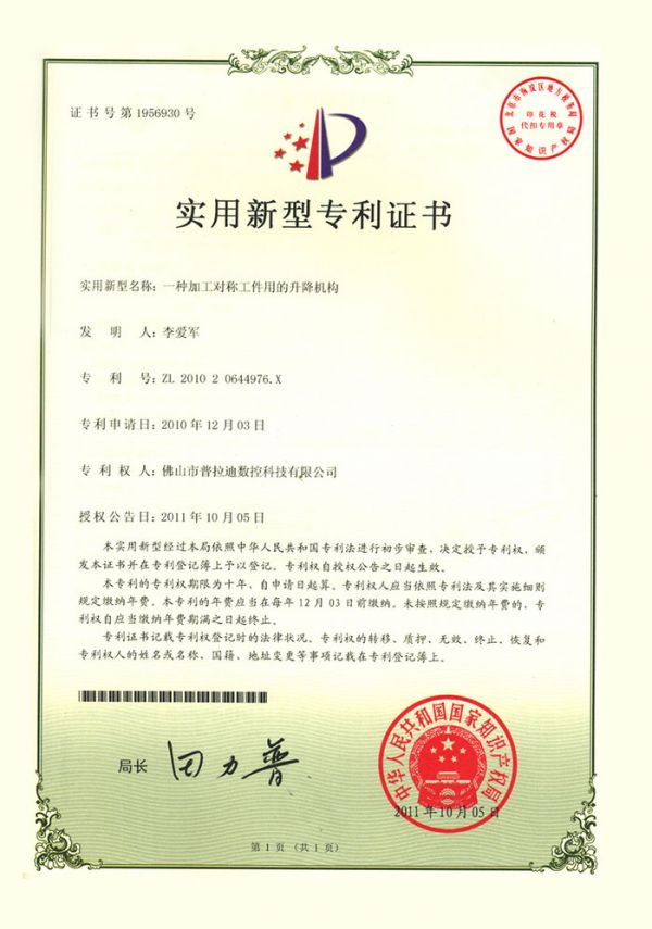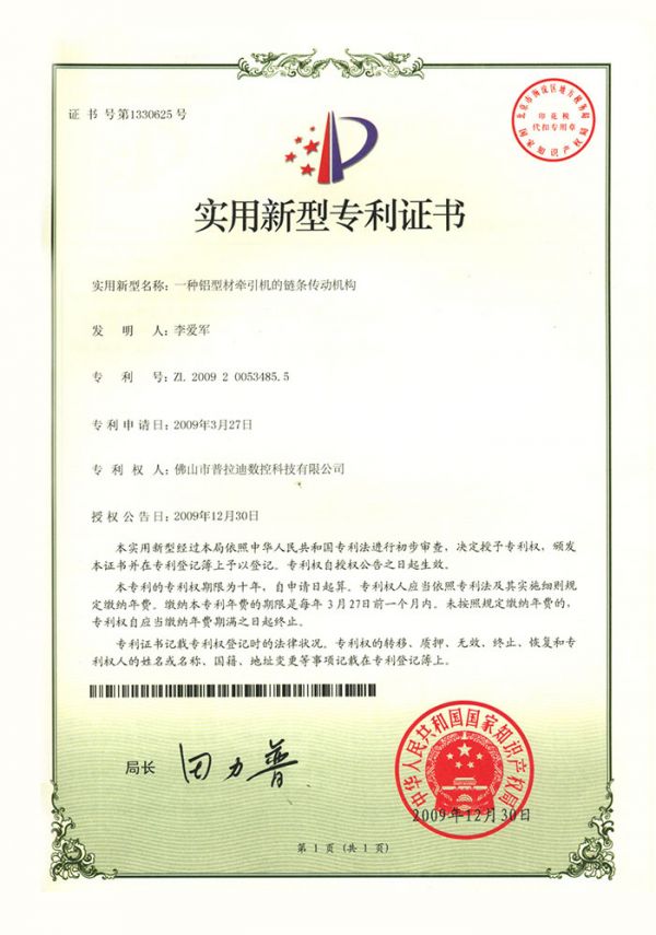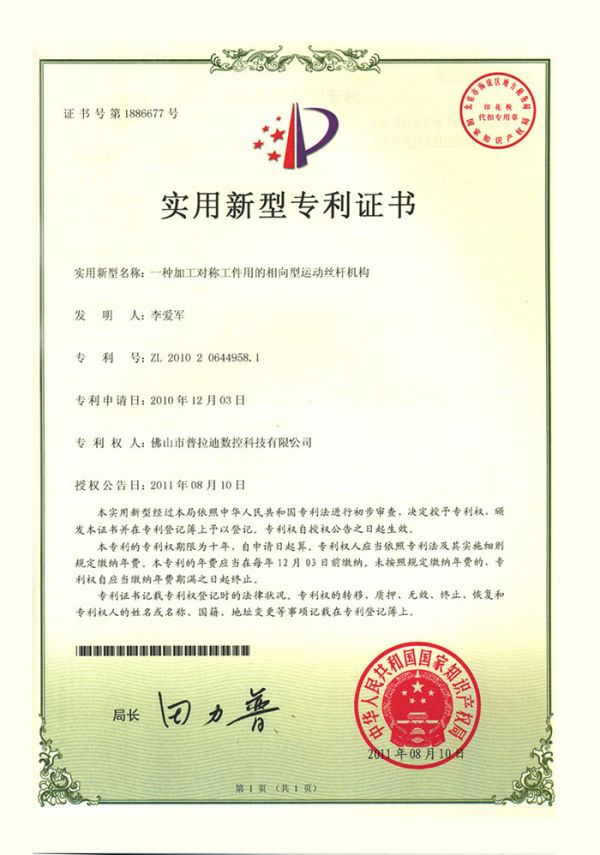 您所在的位置: 首頁(yè)>>走進(jìn)普拉迪>>實(shí)力普拉迪>>專利證書(shū)